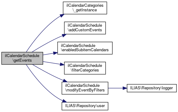 References $res, ilCalendarCategories\_getInstance(), addCustomEvents(), enabledSubitemCalendars(), ilDBConstants\FETCHMODE_OBJECT, filterCategories(), IL_CAL_DATETIME, IL_CAL_UNIX, modifyEventByFilters(), and ILIAS\Repository\user().