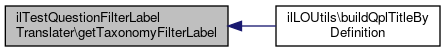 Here is the call graph for this function:| ilTestQuestionFilterLabelTranslater::getTaxonomyFilterLabel | ( | $filter = array(), |