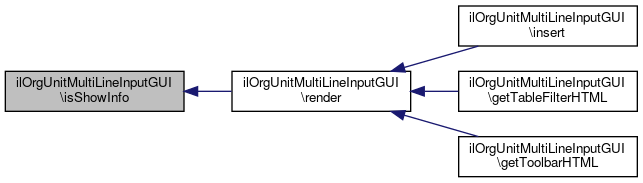 Here is the caller graph for this function:| ilOrgUnitMultiLineInputGUI::isShowInfo | ( | ) |
