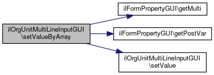 Here is the call graph for this function:| ilOrgUnitMultiLineInputGUI::getValue | ( | ) |