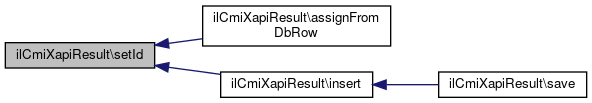 Here is the call graph for this function:| ilCmiXapiResult::setId | ( | int | $id | ) |