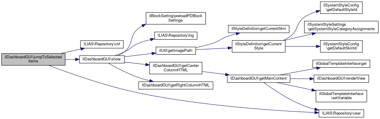 Here is the call graph for this function:| ilDashboardGUI::jumpToSelectedItems | ( | ) |