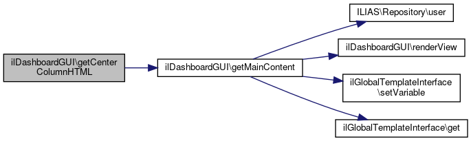 Here is the call graph for this function:| ilDashboardGUI::getCenterColumnHTML | ( | ) |