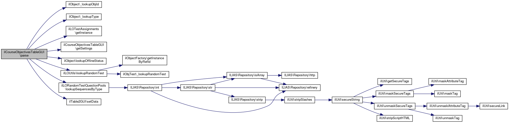 Here is the caller graph for this function:| ilCourseObjectivesTableGUI::parse | ( | array | $a_objective_ids | ) |