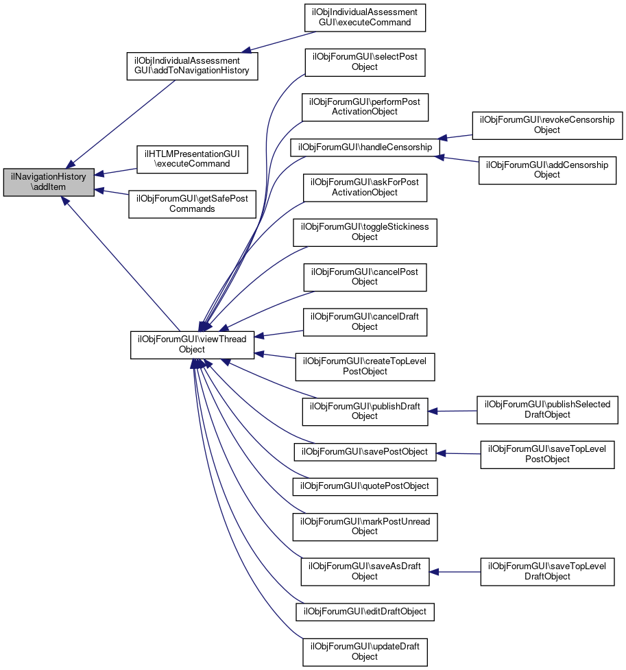 Referenced by ilObjIndividualAssessmentGUI\addToNavigationHistory(), ilHTLMPresentationGUI\executeCommand(), ilObjForumGUI\getSafePostCommands(), and ilObjForumGUI\viewThreadObject().