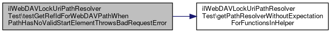 Here is the call graph for this function:| ilWebDAVLockUriPathResolverTest::testGetRefIdForWebDAVPathWithInvalidPathThrowsNotFoundError | ( | ) |