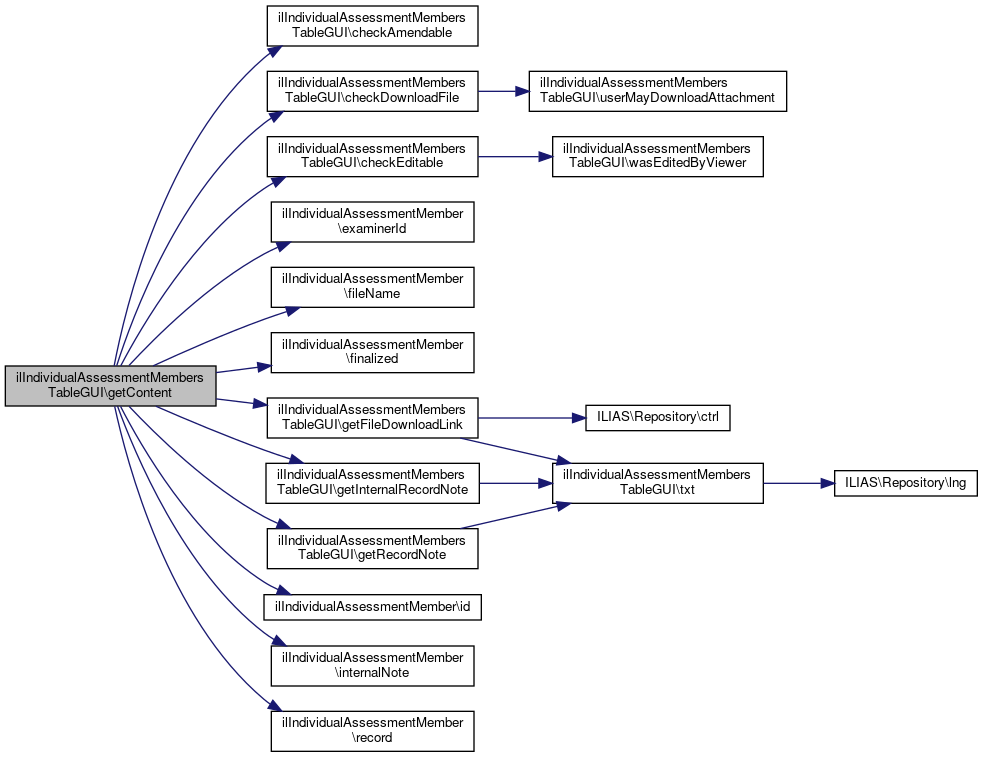 References $current_user_id, checkAmendable(), checkDownloadFile(), checkEditable(), ilIndividualAssessmentMember\examinerId(), ilIndividualAssessmentMember\fileName(), ilIndividualAssessmentMember\finalized(), getFileDownloadLink(), getInternalRecordNote(), getRecordNote(), ilIndividualAssessmentMember\id(), ilIndividualAssessmentMember\internalNote(), and ilIndividualAssessmentMember\record().