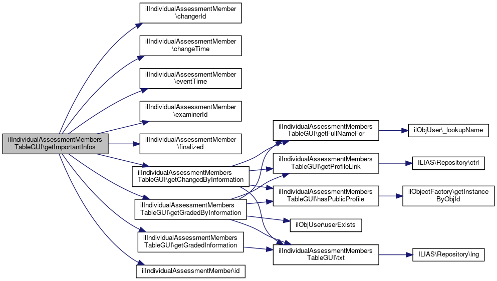 References ilIndividualAssessmentMember\changerId(), ilIndividualAssessmentMember\changeTime(), ilIndividualAssessmentMember\eventTime(), ilIndividualAssessmentMember\examinerId(), ilIndividualAssessmentMember\finalized(), getChangedByInformation(), getGradedByInformation(), getGradedInformation(), and ilIndividualAssessmentMember\id().