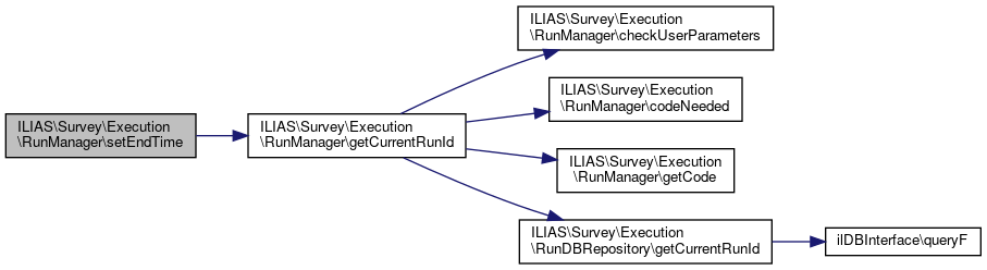 Here is the call graph for this function:| ILIAS\Survey\Execution\RunManager::setEndTime | ( | ) |
