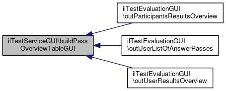 Here is the caller graph for this function:| ilTestServiceGUI::buildPassOverviewTableGUI | ( | ilTestEvaluationGUI | $target_gui | ) |