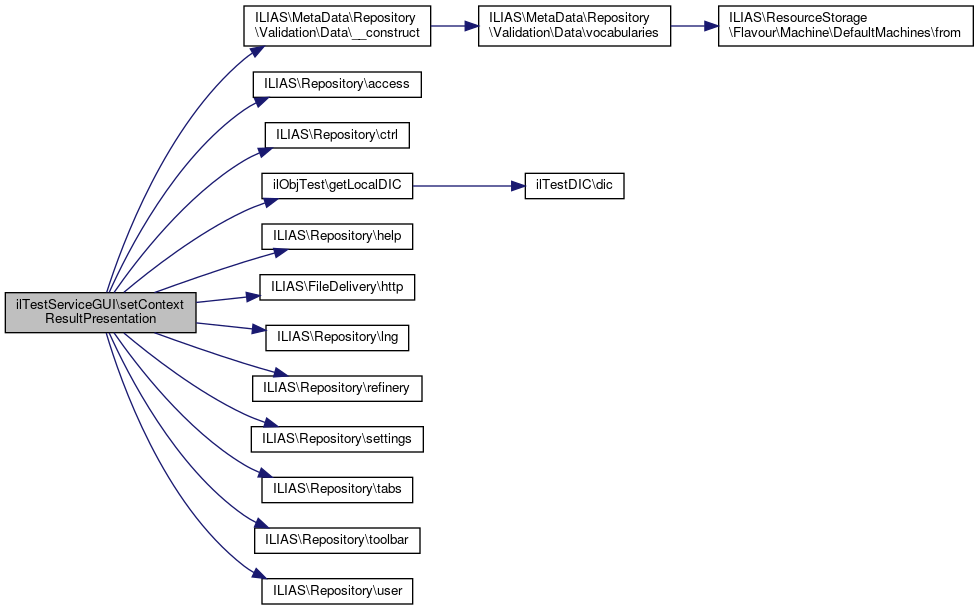 References $contextResultPresentation, $DIC, ILIAS\MetaData\Repository\Validation\Data\__construct(), ILIAS\Repository\access(), ILIAS\Repository\ctrl(), ilObjTest\getLocalDIC(), ILIAS\Repository\help(), ILIAS\FileDelivery\http(), ILIAS\Repository\lng(), ILIAS\Repository\refinery(), ILIAS\Repository\settings(), ILIAS\Repository\tabs(), ILIAS\Repository\toolbar(), and ILIAS\Repository\user().