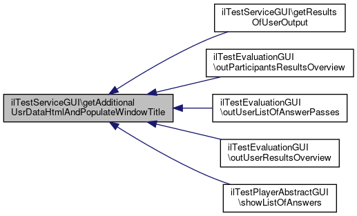 Here is the call graph for this function:| ilTestServiceGUI::getAdditionalUsrDataHtmlAndPopulateWindowTitle | ( | $testSession, | |