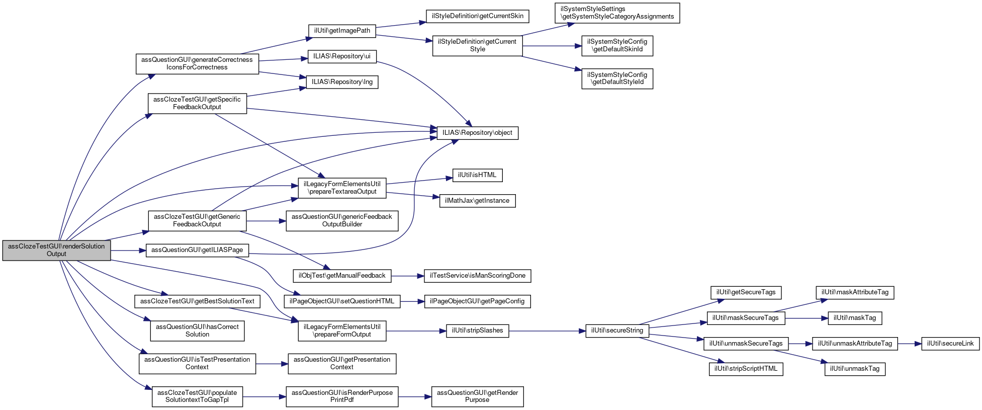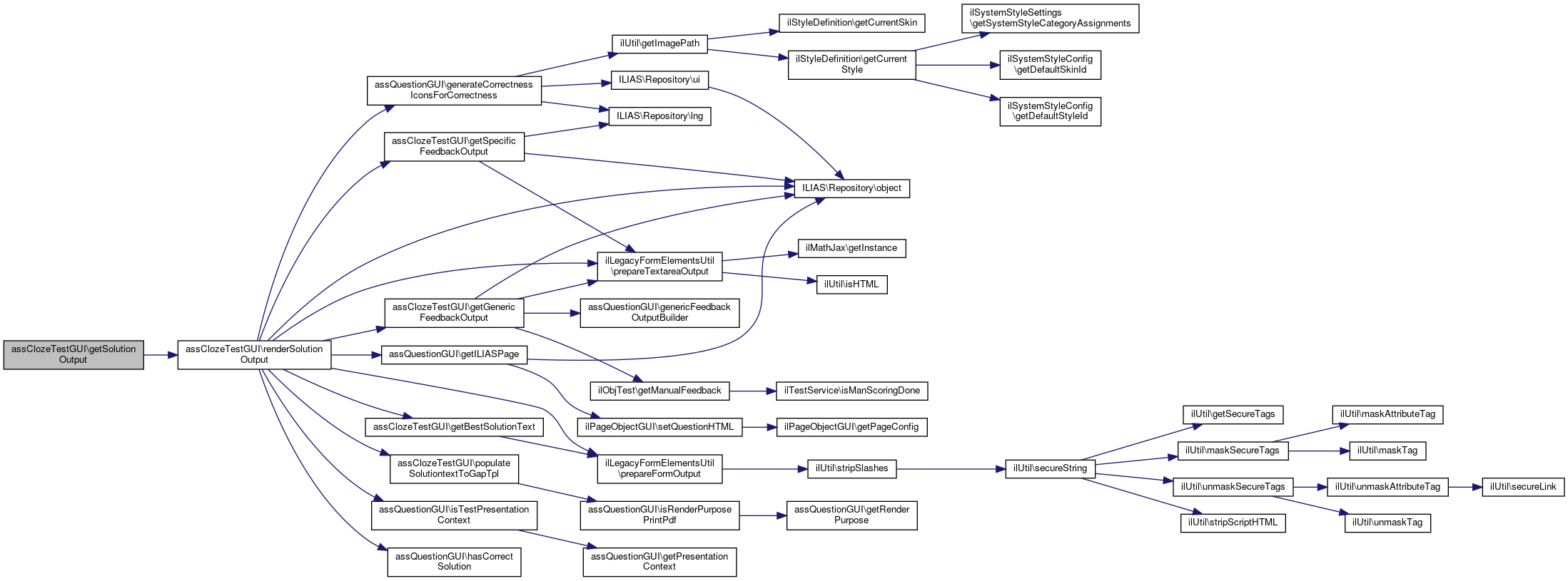 References Vendor\Package\$a, $check, ILIAS\LTI\ToolProvider\$details, ILIAS\LTI\ToolProvider\$key, CLOZE_NUMERIC, CLOZE_SELECT, CLOZE_TEXT, ilAssQuestionFeedback\CSS_CLASS_FEEDBACK_CORRECT, ilAssQuestionFeedback\CSS_CLASS_FEEDBACK_WRONG, assQuestionGUI\generateCorrectnessIconsForCorrectness(), getBestSolutionText(), getGenericFeedbackOutput(), assQuestionGUI\getILIASPage(), getSpecificFeedbackOutput(), assQuestionGUI\hasCorrectSolution(), assQuestionGUI\isTestPresentationContext(), ILIAS\Repository\object(), populateSolutiontextToGapTpl(), ilLegacyFormElementsUtil\prepareFormOutput(), and ilLegacyFormElementsUtil\prepareTextareaOutput().