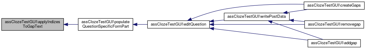 Here is the call graph for this function:| assClozeTestGUI::removeIndizesFromGapText | ( | $question_text | ) |