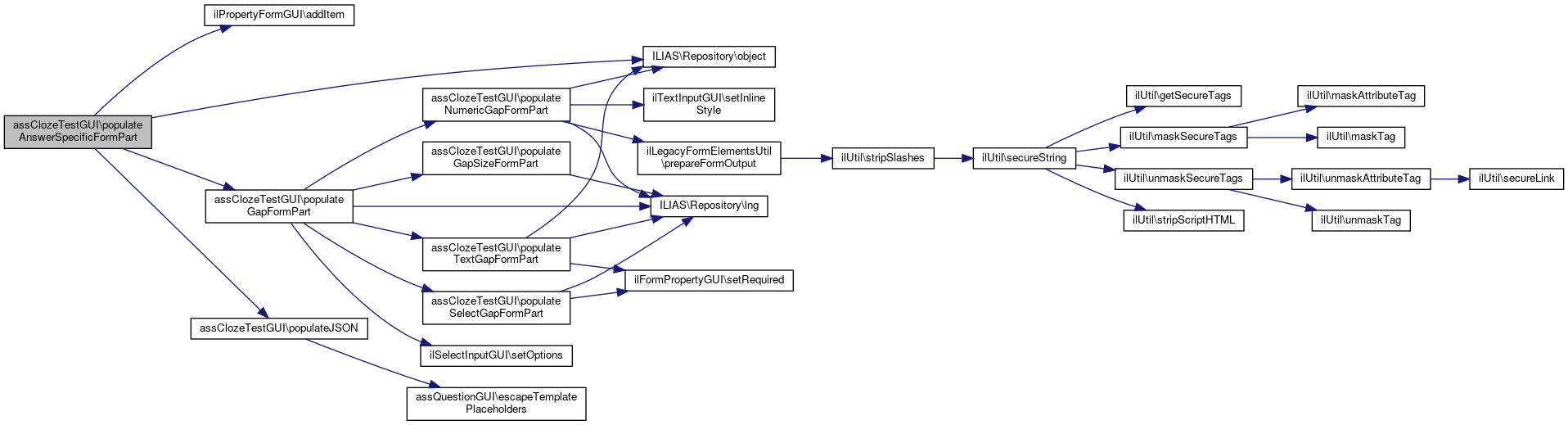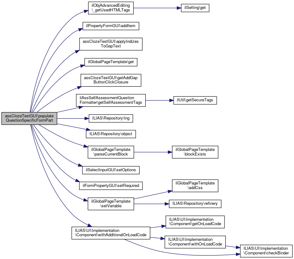 Here is the caller graph for this function:| assClozeTestGUI::populateQuestionSpecificFormPart | ( | ilPropertyFormGUI | $form | ) |