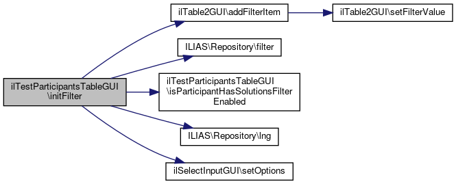 Here is the call graph for this function:| ilTestParticipantsTableGUI::initFilter | ( | ) |