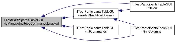 Here is the caller graph for this function:| ilTestParticipantsTableGUI::isManageInviteesCommandsEnabled | ( | ) |