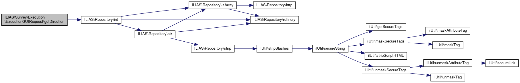 Here is the call graph for this function:| ILIAS\Survey\Execution\ExecutionGUIRequest::getDirection | ( | ) |