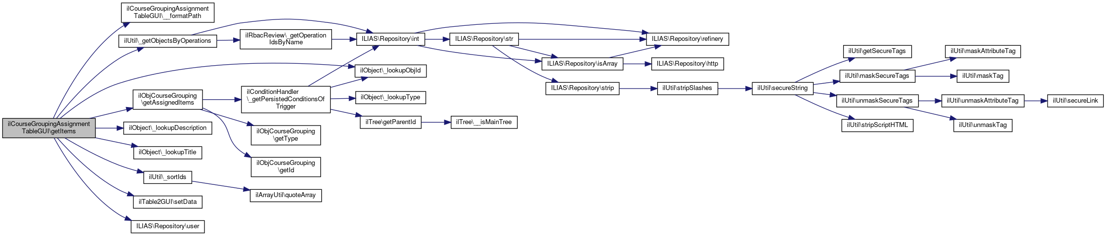 References ilTableGUI\$data, $ref_id, __formatPath(), ilUtil\_getObjectsByOperations(), ilObject\_lookupDescription(), ilObject\_lookupObjId(), ilObject\_lookupTitle(), ilUtil\_sortIds(), ilObjCourseGrouping\getAssignedItems(), ilTable2GUI\setData(), and ILIAS\Repository\user().
