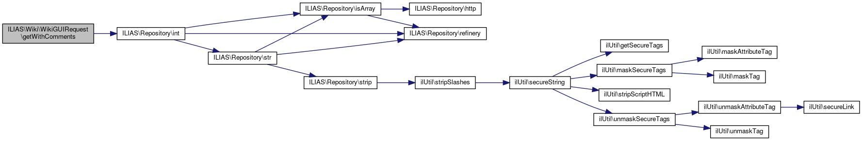 Here is the call graph for this function:| ILIAS\Wiki\WikiGUIRequest::getWithComments | ( | ) |