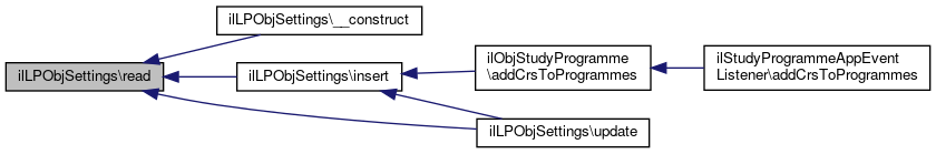 Here is the caller graph for this function:| ilLPObjSettings::read | ( | ) |