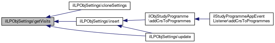 Here is the caller graph for this function:| ilLPObjSettings::getVisits | ( | ) |