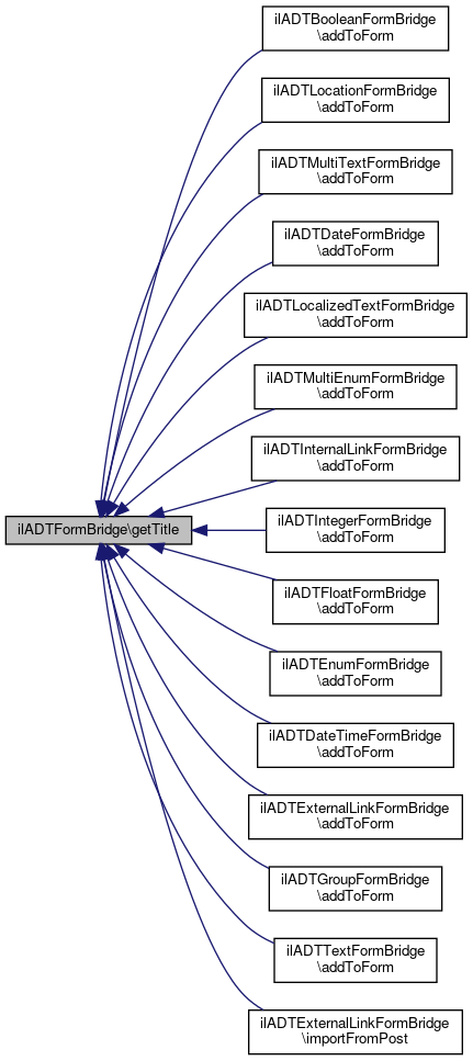 Here is the caller graph for this function:| ilADTFormBridge::getTitle | ( | ) |
