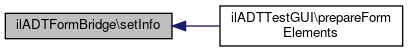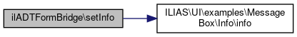 Here is the call graph for this function:| ilADTFormBridge::setInfo | ( | string | $a_value | ) |