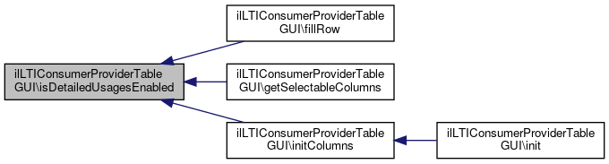 Here is the caller graph for this function:| ilLTIConsumerProviderTableGUI::isDetailedUsagesEnabled | ( | ) |