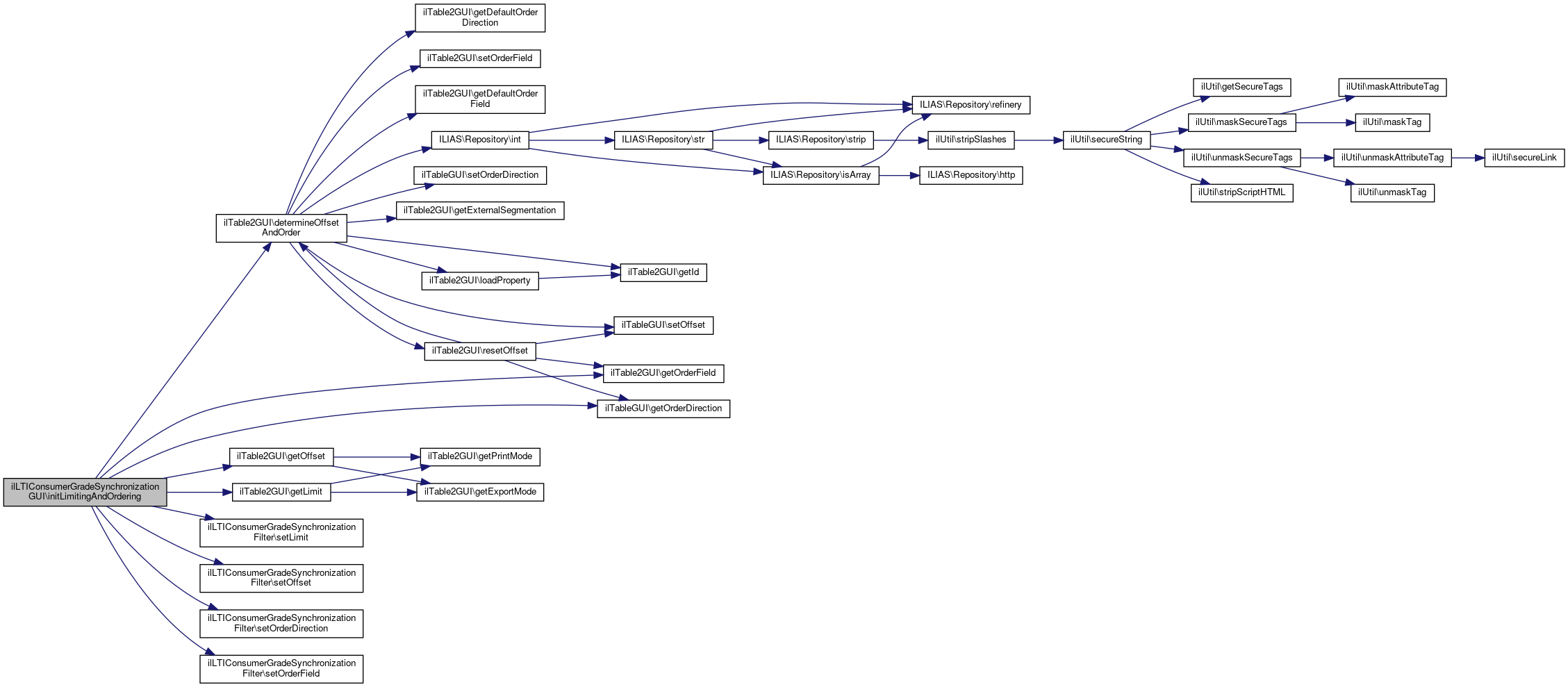 References ilTable2GUI\determineOffsetAndOrder(), ilTable2GUI\getLimit(), ilTable2GUI\getOffset(), ilTableGUI\getOrderDirection(), ilTable2GUI\getOrderField(), ilLTIConsumerGradeSynchronizationFilter\setLimit(), ilLTIConsumerGradeSynchronizationFilter\setOffset(), ilLTIConsumerGradeSynchronizationFilter\setOrderDirection(), and ilLTIConsumerGradeSynchronizationFilter\setOrderField().