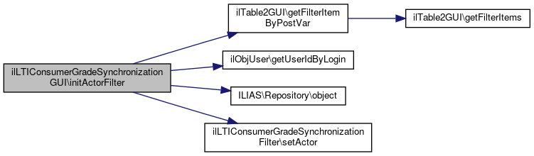 References $DIC, ilTable2GUI\getFilterItemByPostVar(), ilObjUser\getUserIdByLogin(), ILIAS\Repository\object(), and ilLTIConsumerGradeSynchronizationFilter\setActor().