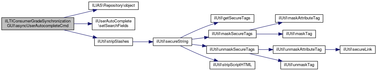 Here is the call graph for this function:| ilLTIConsumerGradeSynchronizationGUI::asyncUserAutocompleteCmd | ( | ) |