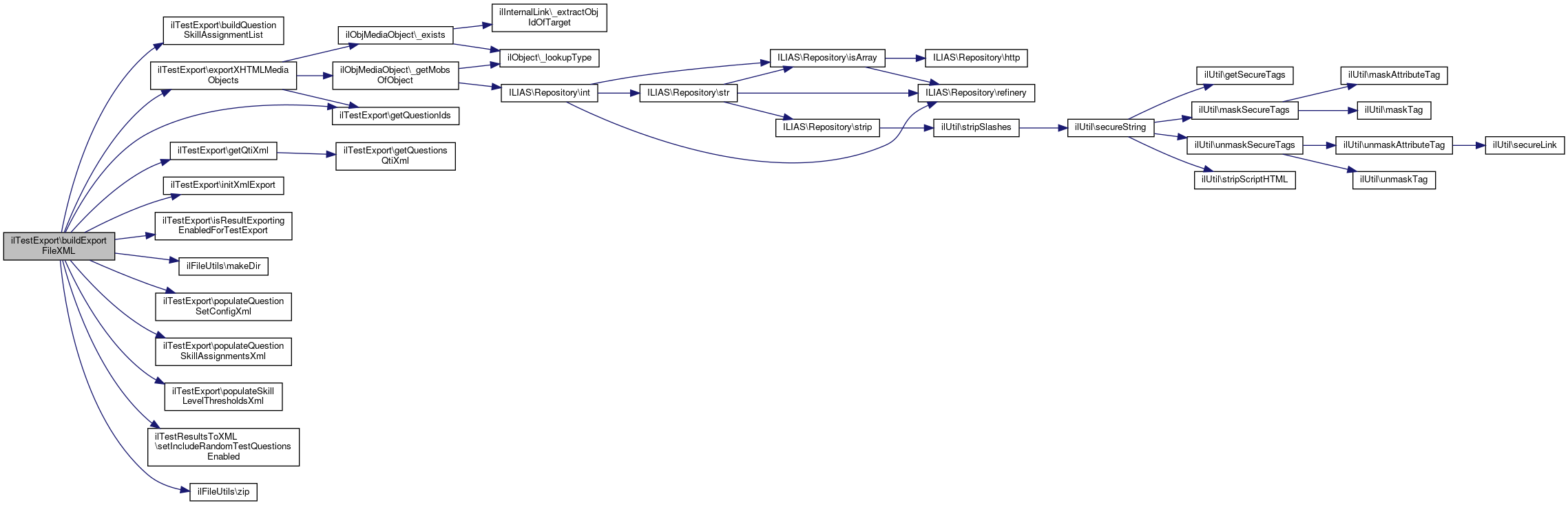 References $db, $irss, buildQuestionSkillAssignmentList(), exportXHTMLMediaObjects(), getQtiXml(), getQuestionIds(), initXmlExport(), isResultExportingEnabledForTestExport(), ilFileUtils\makeDir(), populateQuestionSetConfigXml(), populateQuestionSkillAssignmentsXml(), populateSkillLevelThresholdsXml(), ilTestResultsToXML\setIncludeRandomTestQuestionsEnabled(), and ilFileUtils\zip().