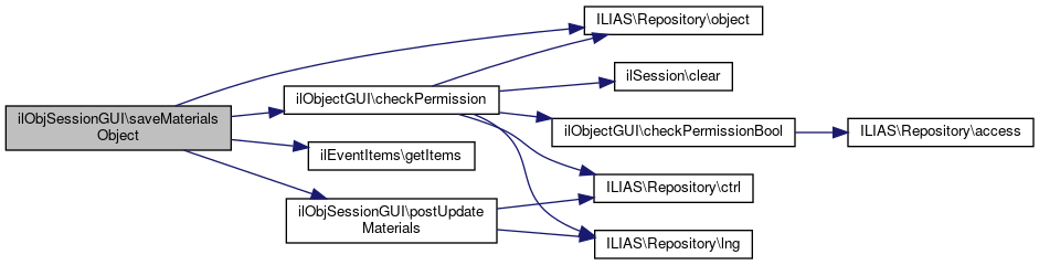 Here is the call graph for this function:| ilObjSessionGUI::saveMaterialsObject | ( | ) |