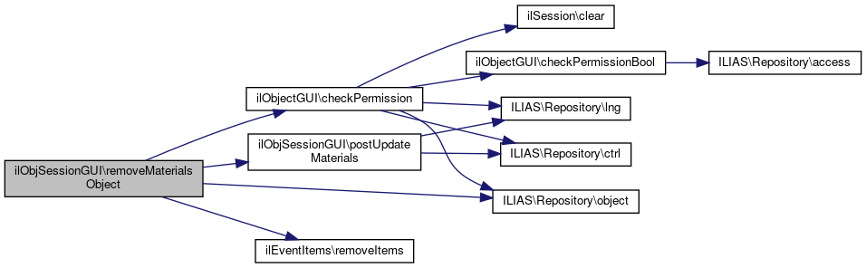 Here is the call graph for this function:| ilObjSessionGUI::removeMaterialsObject | ( | ) |