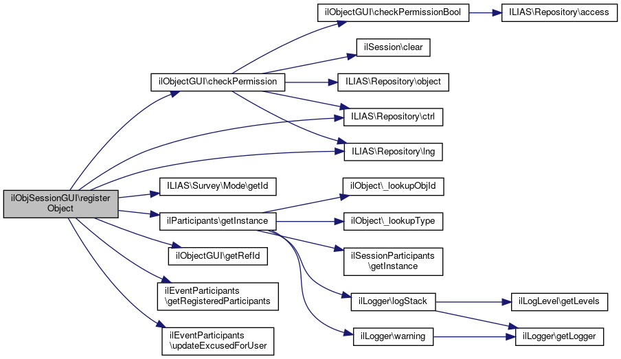 Here is the call graph for this function:| ilObjSessionGUI::registerObject | ( | ) |