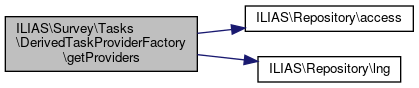 Here is the call graph for this function:| ILIAS\Survey\Tasks\DerivedTaskProviderFactory::getProviders | ( | ) |