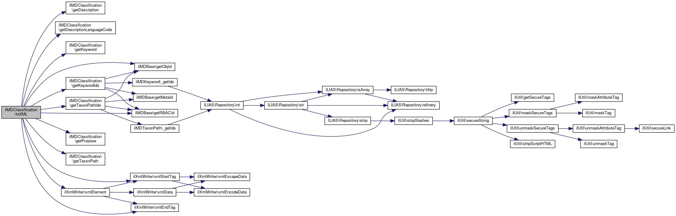 Here is the caller graph for this function:| ilMDClassification::toXML | ( | ilXmlWriter | $writer | ) |