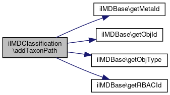 Here is the call graph for this function:| ilMDClassification::addTaxonPath | ( | ) |