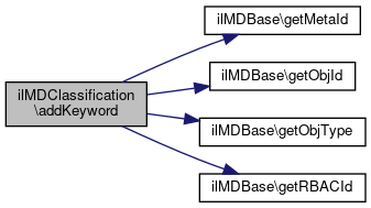 Here is the caller graph for this function:| ilMDClassification::addKeyword | ( | ) |
