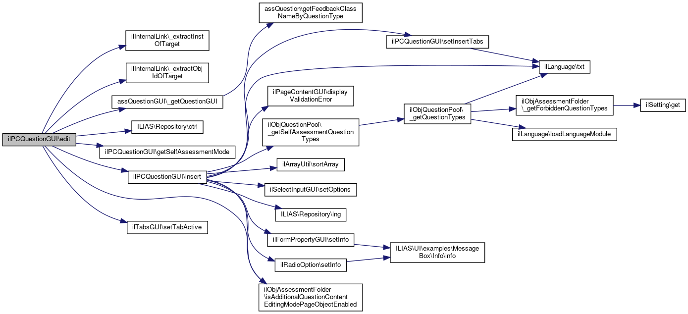 Here is the call graph for this function:| ilPCQuestionGUI::edit | ( | ) |