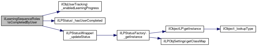 Here is the call graph for this function:| ilLearningSequenceRoles::isCompletedByUser | ( | int | $usr_id | ) |