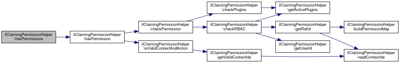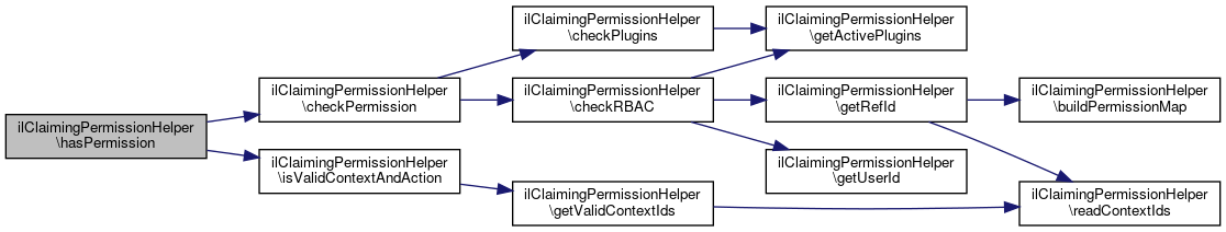 Here is the caller graph for this function:| ilClaimingPermissionHelper::hasPermission | ( | int | $a_context_type, |