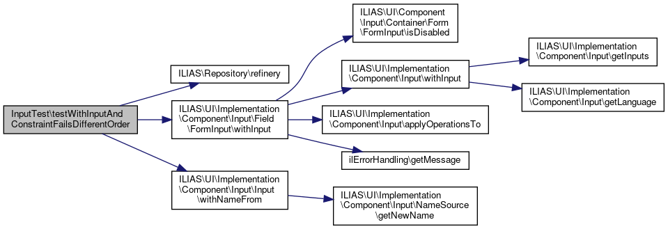 Here is the call graph for this function:| InputTest::testWithInputAndConstraintFailsDifferentOrder | ( | ) |
