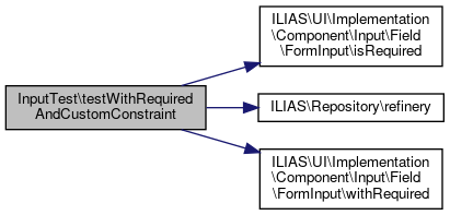 Here is the call graph for this function:| InputTest::testWithRequiredAndCustomConstraint | ( | ) |