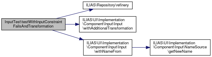 Here is the call graph for this function:| InputTest::testWithInputConstraintFailsAndTransformation | ( | ) |