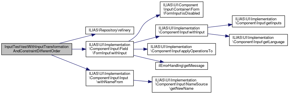 Here is the call graph for this function:| InputTest::testWithInputConstraintFailsAndTransformationDifferentOrder | ( | ) |