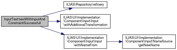 Here is the call graph for this function:| InputTest::testWithInputAndConstraintSuccessfull | ( | ) |