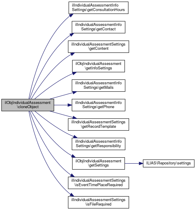 References ilIndividualAssessmentInfoSettings\getConsultationHours(), ilIndividualAssessmentInfoSettings\getContact(), ilIndividualAssessmentSettings\getContent(), getInfoSettings(), ilIndividualAssessmentInfoSettings\getMails(), ilIndividualAssessmentInfoSettings\getPhone(), ilIndividualAssessmentSettings\getRecordTemplate(), ilIndividualAssessmentInfoSettings\getResponsibility(), getSettings(), ilIndividualAssessmentSettings\isEventTimePlaceRequired(), and ilIndividualAssessmentSettings\isFileRequired().