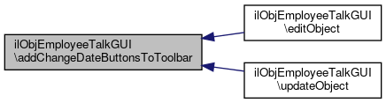 Here is the call graph for this function:| ilObjEmployeeTalkGUI::addChangeDateButtonsToToolbar | ( | ) |